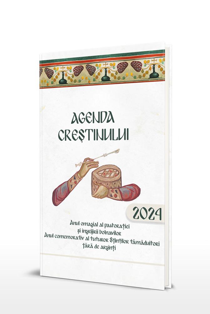 Agenda creștinului îți aduce aminte că ai, undeva prin casă, și un stilou sau pix, că există nume pe care nu le-ai cuprins în rândurile unor pagini de ceva timp, iar viața ta e mai mult decât telefonul tău mobil sau laptopul. În agenda creștinului îți oferim posibilitatea să-ți notezi evenimentele importante din viață, să vezi ce sfânt îți stă la răsăritul și apusul fiecărei zile.