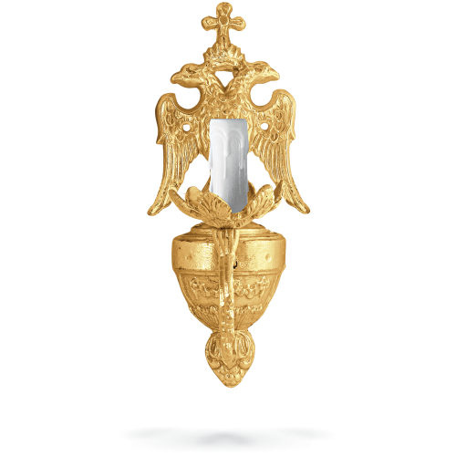 315,00 LEI Dimensiuni - 10 x 34 x 21 cm Categorie Aplice Material Alamă Proveniență Grecia Tematică Obiecte bisericești Grecia