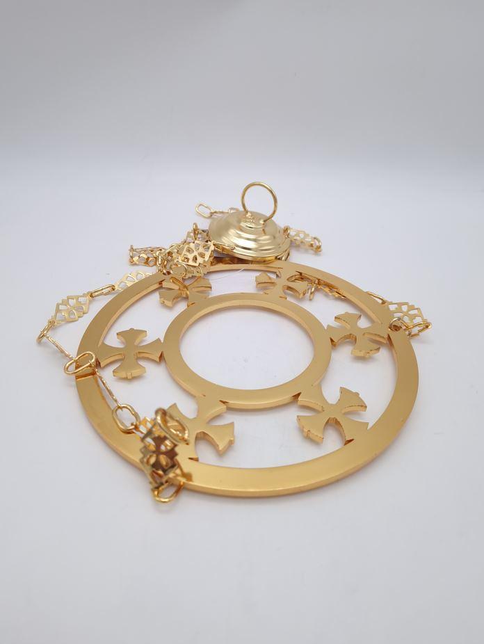 PreviousNext 290,00 LEI Paharul nu este inclusDimensiuni18 x 1 x 18 cmDiametru pahar - 7 cm Categorie Candele cu lanț Material Alamă Proveniență Grecia