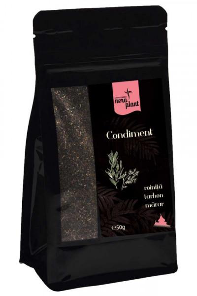 Condimentul Nera Plant cu roiniță, tarhon și mărar se folosește pentru aromatizarea salatelor vegane, a ciorbelor și supelor de legume, în prepararea mâncărurilor cu cartofi, a brânzeturilor din soia, a omletelor, a droburilor din soia, linte sau năut, în preparatele principale pe bază de pește, pui, cartofi, mazăre.