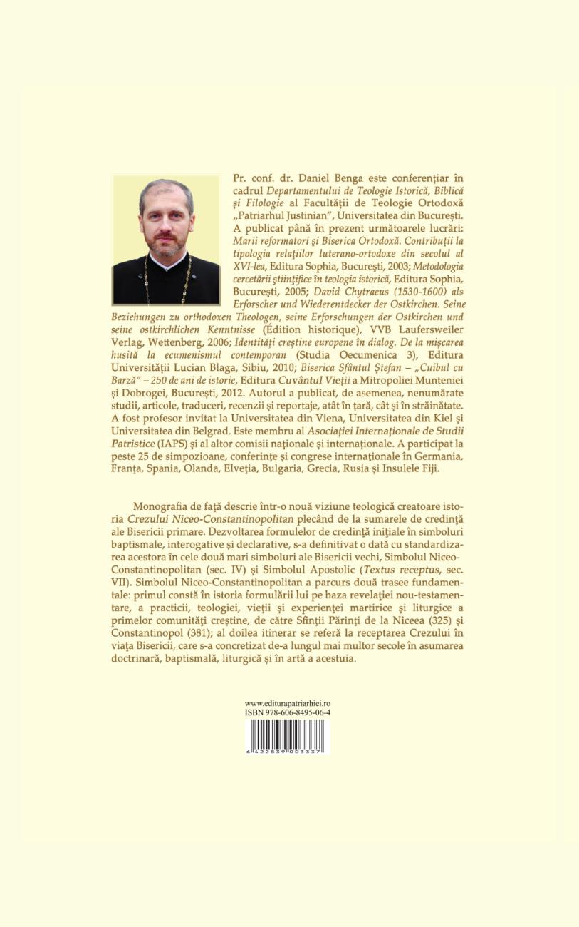 După cum afirmă și autorul în Argumentul care deschide acest important volum, „o istorie teologică a Crezului Niceo-Constantinopolitan constituie un demers fascinant și un itinerar ce pornește de la mărturisirile de credință ale Noului Testament, ca aceea a lui Petru, făcută la Cezareea lui Filip, când a răspuns la interogația Mântuitorului prin cuvintele: „Tu ești Hristosul, Fiul lui Dumnezeu Celui viu” (Matei 16, 16). Prin astfel de formule de credință sau homologhii, creștinii începuturilor au creat primele sumare ale credinței în Sfânta Treime și în Fiul lui Dumnezeu întrupat. Istoria Simbolului credinței este descrierea amplificării și augmentării scurtelor homologhii și sumare de credință ale Bisericii primare datorită noilor contexte în care Biserica a trebuit să propovăduiască și să apere credința. Dezvoltarea formulelor de credință inițiale a constat într-un proces de prelucrare succesivă a micilor „crezuri” ale începutului, în special simboluri baptismale, până la standardizarea lor în cele două mari simboluri ale Bisericii primelor veacuri, Simbolul Niceo-Constantinopolitan1 (sec. IV) și Simbolul Apostolic (Textus receptus, sec. VII).