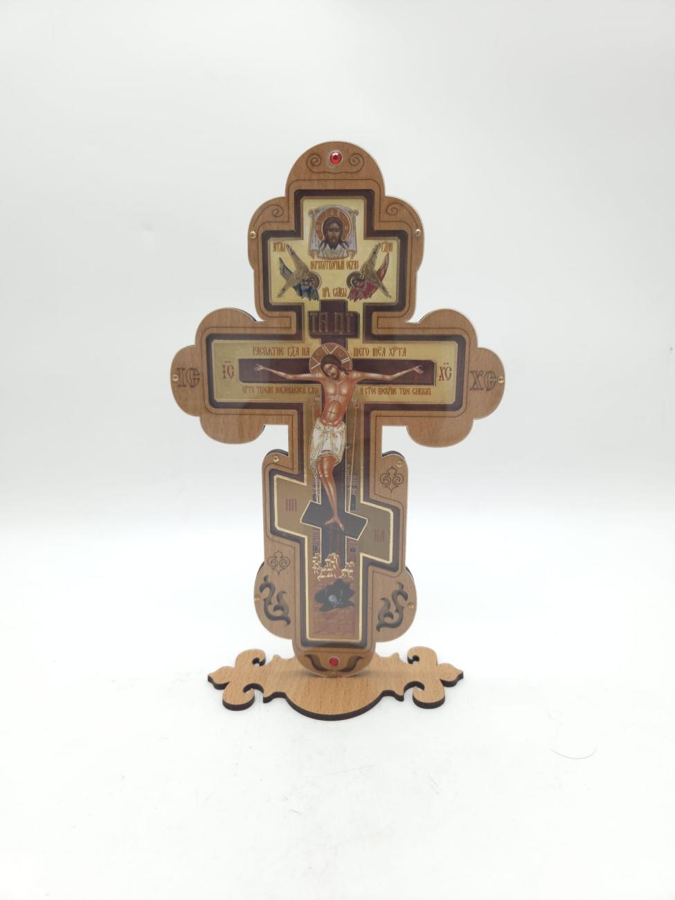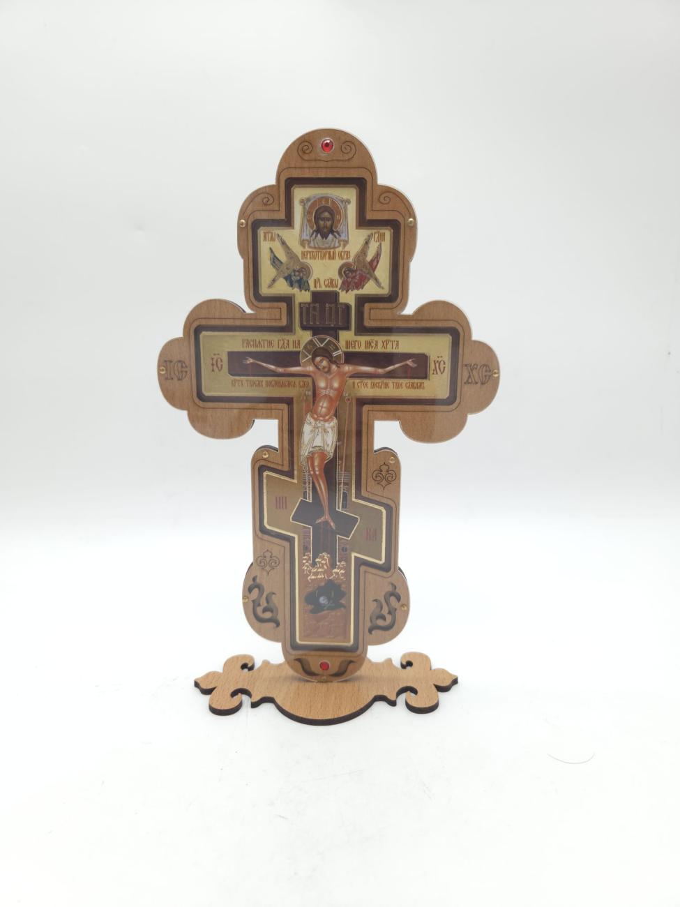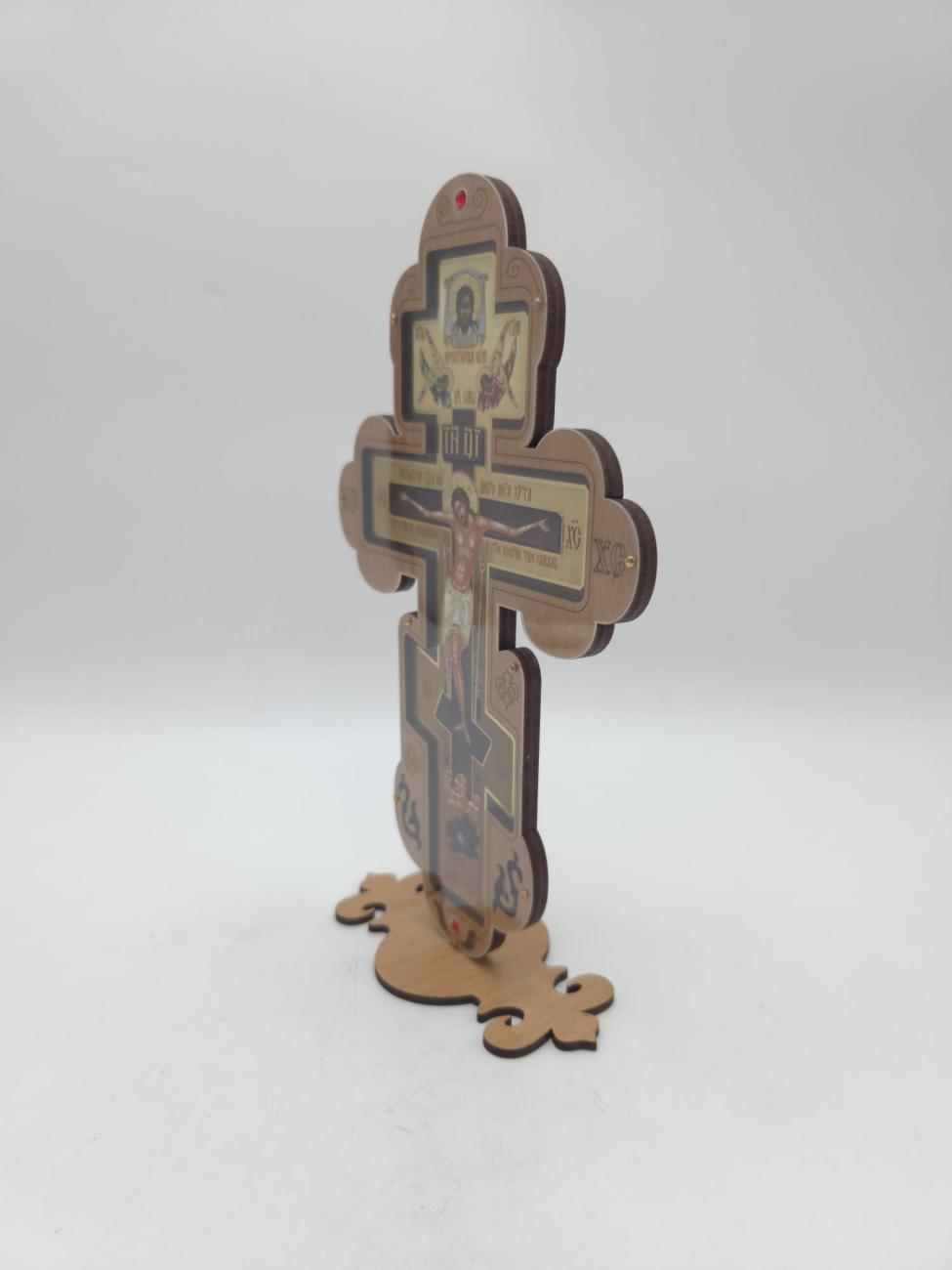 Cruce litografiata din lemn cu postament 23,5x14 cm