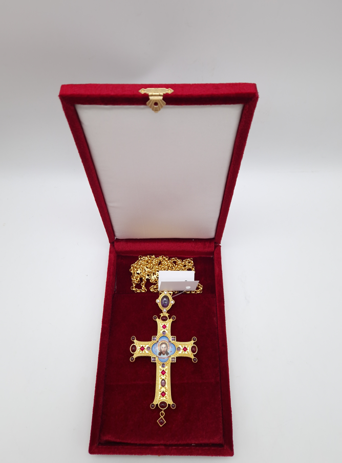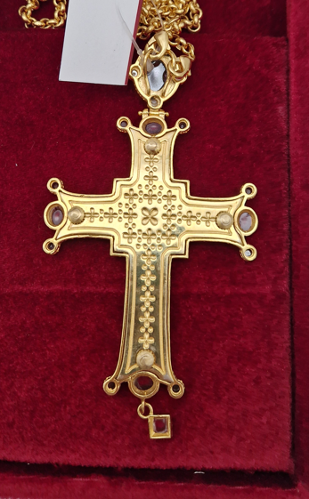 Cruce pectorala aurita cu pietre semipretioase - 15x8 cm