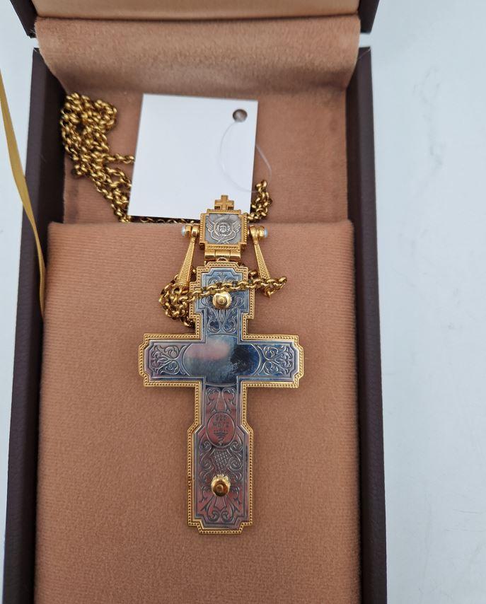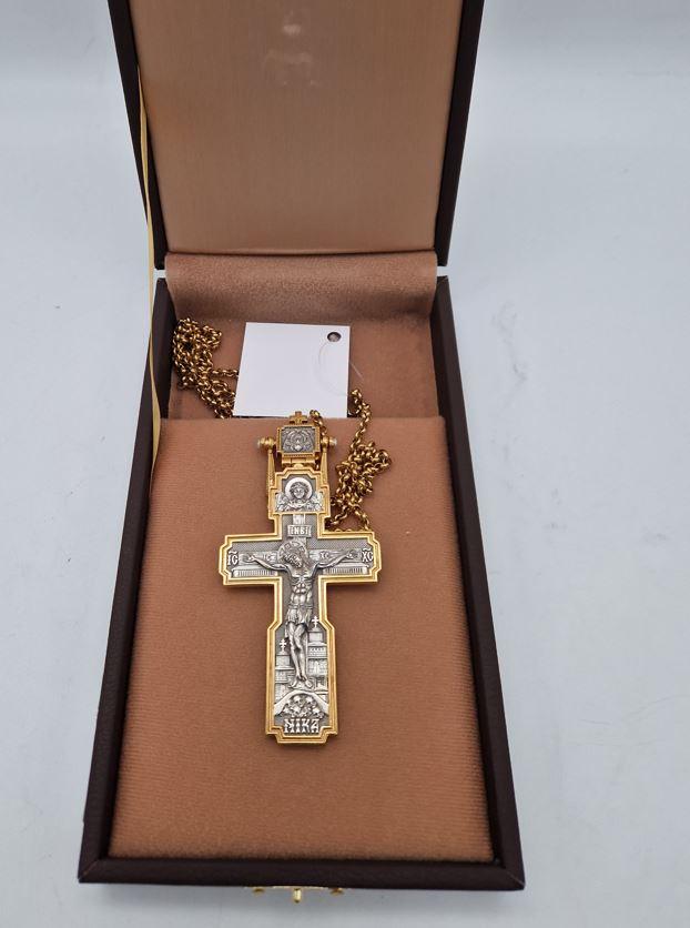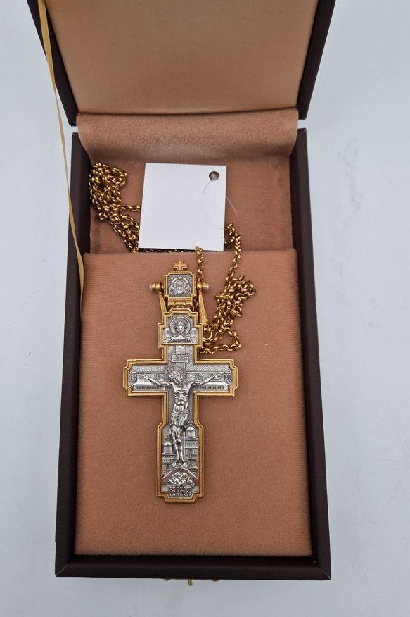 Set arhieresc deosebit engolpion cu icoana Buneivestiri si cruce pectorala din argint 925