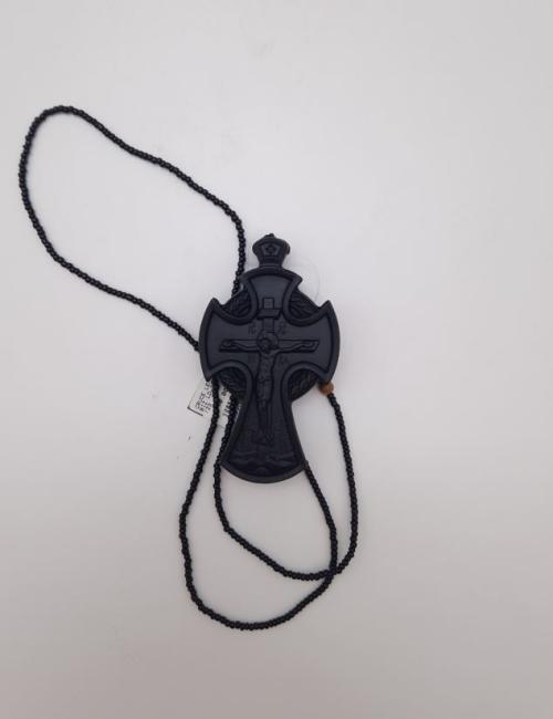 Cruce pectorala din argint aurit 925 cu insertie de lemn sculptat - 15x8 cm