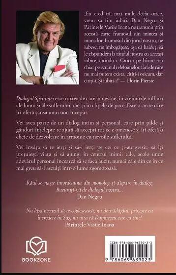 ”Eu cred că mai mult decât orice, vrem să fim iubiți. Dan Negru și Părintele Vasile Ioana ne transmit prin această carte frumosul din mintea și inima lor, frumosul din jurul nostru, ne iubesc, ne îmbogățesc, așa că, să le răspundem la rândul nostru cu aceeași iubire, citindu-i. Citiți-i pe hârtie, sau chiar pe ecranul telefoanelor, fără de care nu mai putem exista, citiți-i oricum, dar citiți-i. Și iubiți-i!” – Florin Piersic