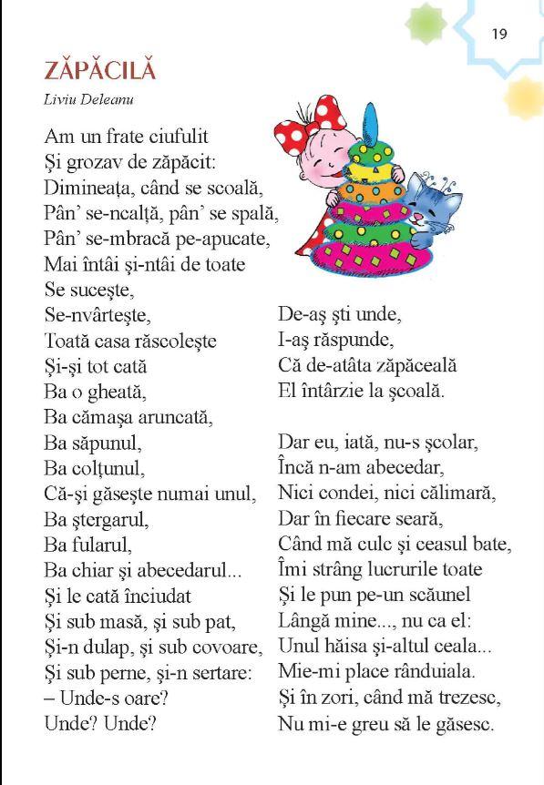 Cuprinde o colecție impresionantă de poezii pentru copii semnate de autori români precum Grigore Vieru, Mihai Eminescu, Vasile Alecsandri, Otilia Cazimir, Vasile Romanciuc, Leonida Lari, Alexandru Donici ș.a.
