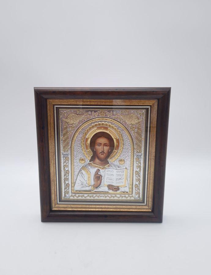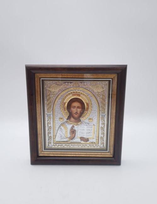 Icoana argintata cu suport de perete - Iisus Hristos - 17x16 cm