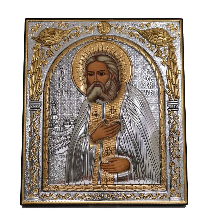 Icoană argintată cu suport pentru birou 25x20 cm - Sf. Serafim de Sarov