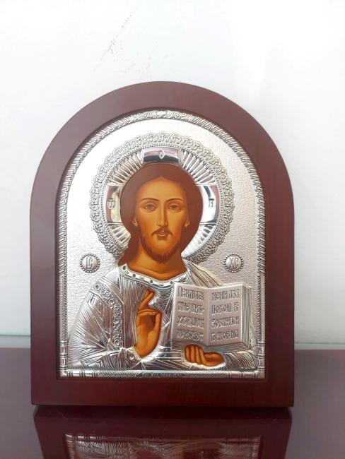 PreviousNext 121,00 LEI Dimensiuni 18x15 cm Categorie Icoane de argint/argintate Material Alamă Lemn Stil Bizantin Proveniență Grecia Tematică Silver Axion Mântuitorul Iisus Hristos