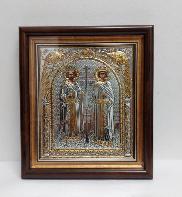 PreviousNext 200,00 LEI Stoc epuizat Categorie Icoane de argint/argintate Material Alamă Lemn Sticlă Proveniență Grecia Tematică Silver Axion Sfinții Împărați Constantin și Elena