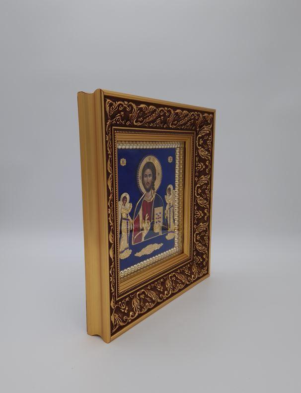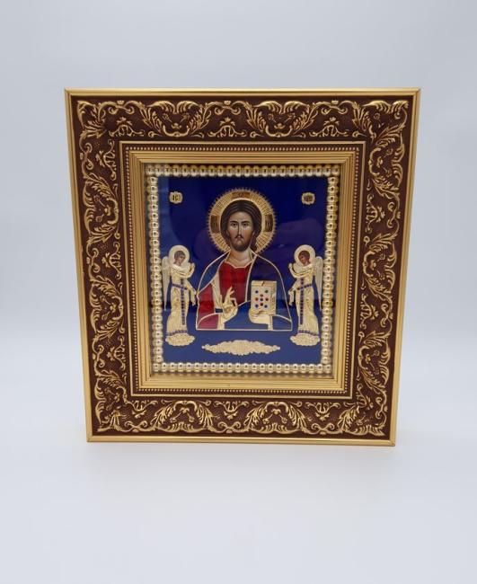 Icoana argintata ornamentata cu email si rama stilizata - Mantuitorul Hristos - 53x44 cm