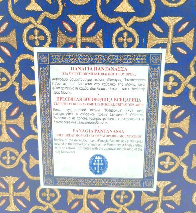 Copie dupa icoana făcătoare de minuni a Icoana Maica Domnului Pantanassa - Imparateasa tuturor - Vindecatoarea de cancer adusă de la Sfânta Mare Mănăstire Vatoped din Sfântul Munte Athos cu binecuvântarea Părintelui Arhimandrit Efrem, starețul mănăstirii.