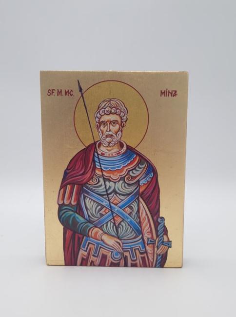 Icoana pictata cu foita de aur - Sf. Mina - 19x14 cm