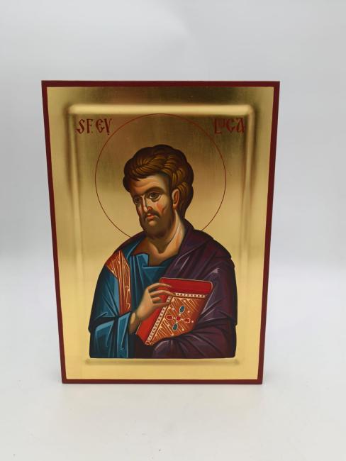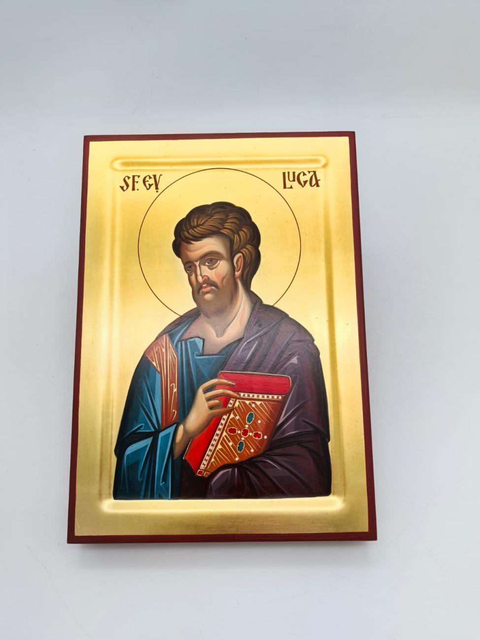Icoana pictata manual cu foita de aur pe blat de lemn sf ap luca a4