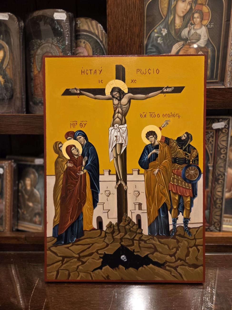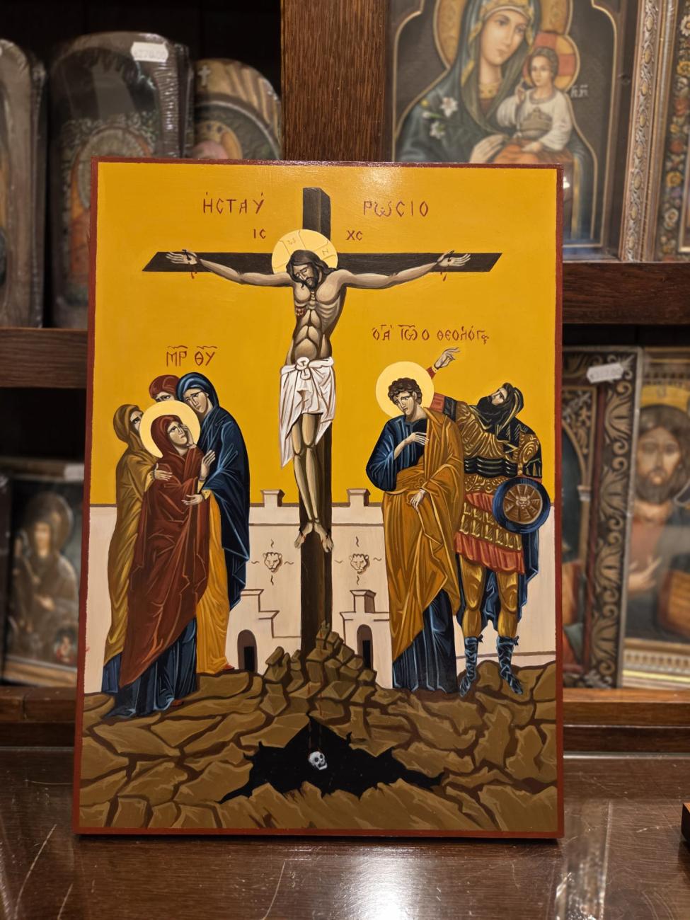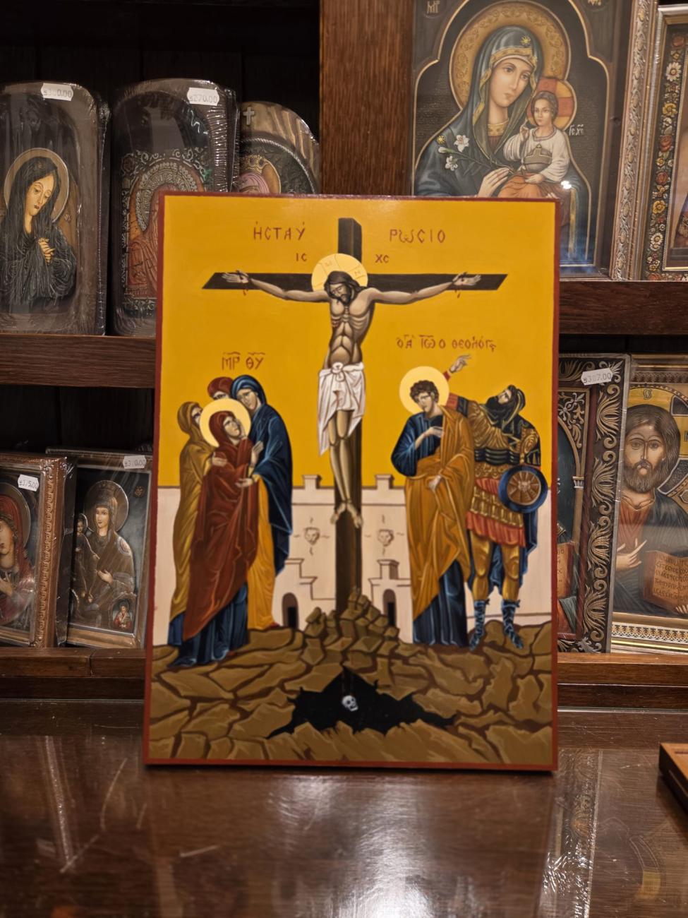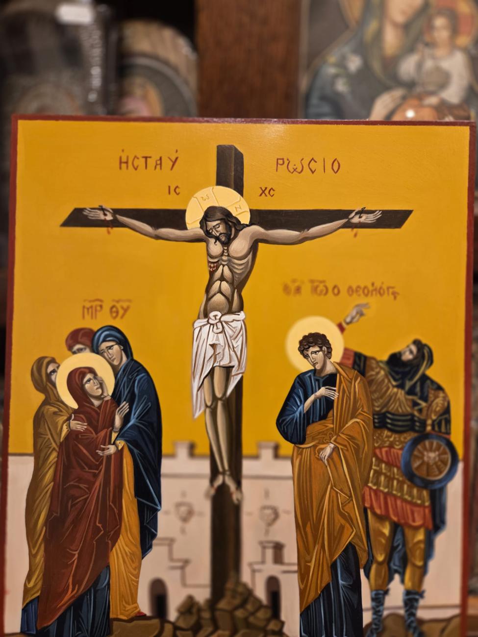 • Icoana pictata manual pe blat de lemn rastignirea domnului a3