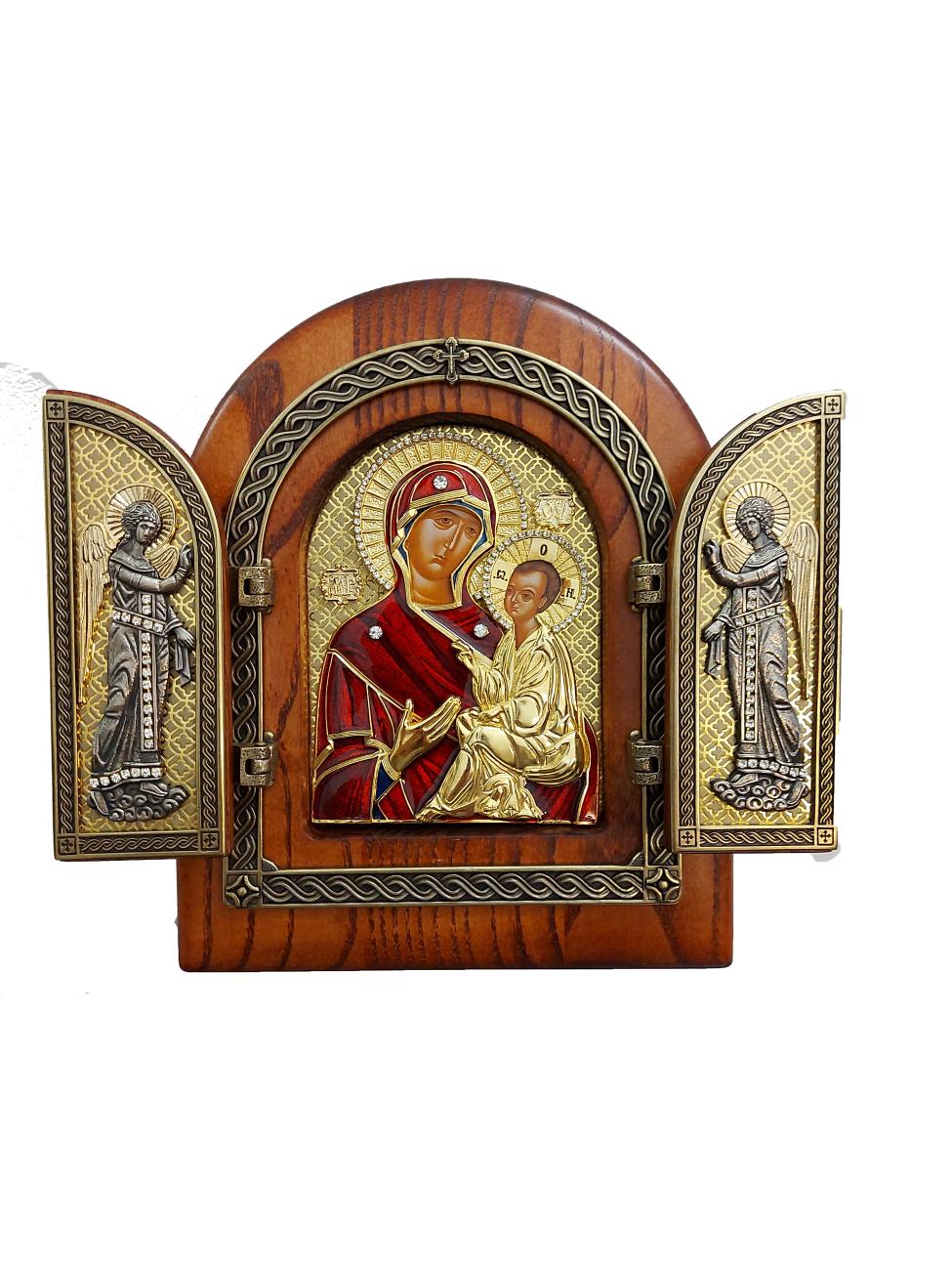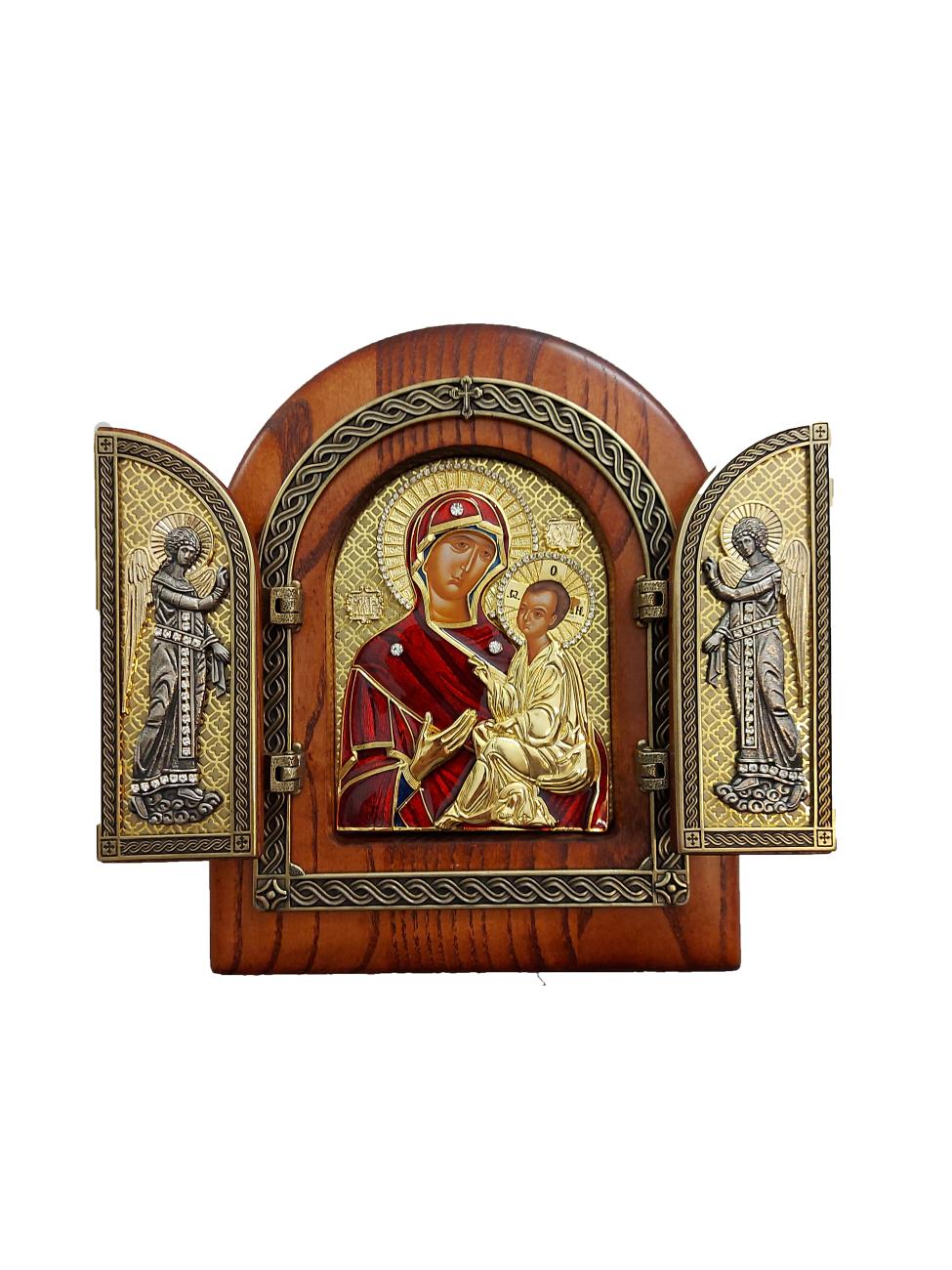 • Icoana triptic aurita si argintata ornamentata cu email 22x17 cm
