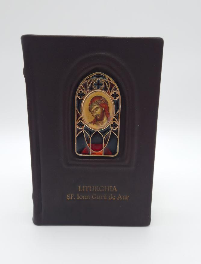 Liturghier mic cu copertă din piele și foiță – Dumnezeiasca Liturghie a Sfântului Ioan Gură de Aur