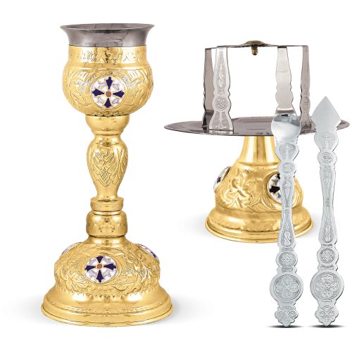 Diametru potir baza 13 cm / potir cupa 9 cm / disc 19 cm