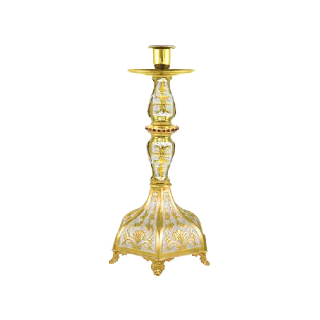 845,00 LEI Dimensiuni - 18 x 36 x 18 cm Categorie Sfeșnice pentru Sfânta Masă Material Alamă Proveniență Grecia Tematică Obiecte bisericești Grecia