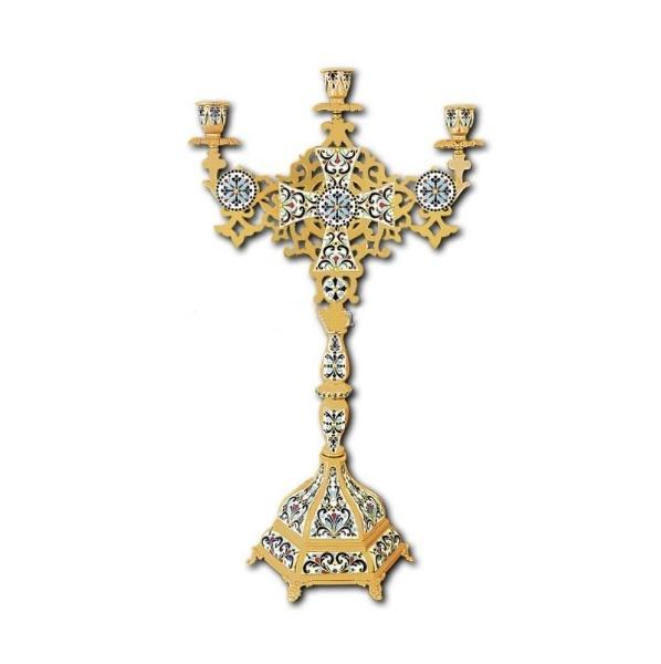 4.460,00 LEI Inaltime 70 cm Lungime 21 cm Latime 45 cm Greutate Neta 2,7 kg Categorie Sfeșnice pentru Sfânta Masă Material Alamă Bronz