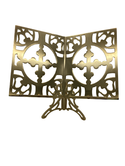 848,00 LEI Stoc epuizat Dimensiuni (HxLxD) - 27 x 32 x 32 cm Greutate - 3.2 kg Categorie Analog/suport evanghelie/liturghier Material Alamă Proveniență Grecia